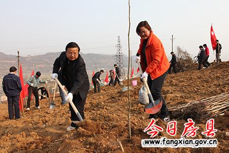 今日房县网讯 记者赵爱平 魏远扬报道:建设生态房县,打造宜居家园。9日,县领导沈明云、朱光洪、王启云、王家波、徐锦凤、陈渊、张永平、邓华明、王敬东、罗治建、林华、张延贵等深入城关镇三海村沙沟(三海水厂后坡),与县直机关单位干部职工及青年志愿者一起共同开展义务植树活动,为建设生态房县挥锹添绿。
