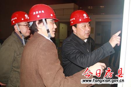图为沈明云一行在三里坪电站察看电站建设情况