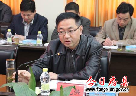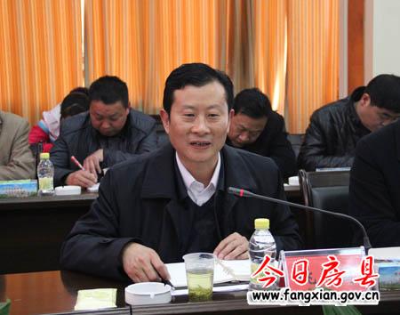 图为县委常委、副县姚天国主持汇报会