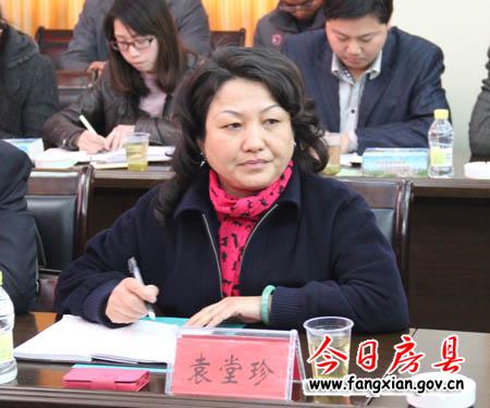图为县政府党组成员袁堂珍出席汇报会
