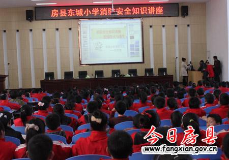今日房县网讯 记者向强 实习生王玮 通讯员李英报道:27日,东城小学邀请县消防队刘未来队长为四、五年级师生们开展消防安全讲座和灭火演练培训。