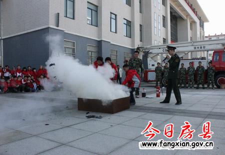 学生们现场演示了消防器材的使用