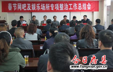 今日房县网讯 记者向强报道: 3日,县文体局召开网吧、娱乐场所专项整治工作总结会议。全县网吧、娱乐场所经营业主参会。