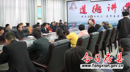 今日房县网讯 (记者向强)3日,记者在化龙堰古城村会议室看到这里坐无虚席,掌声不断……,现场气氛十分热烈。原来在这里一场别开生面的道德讲堂精彩开讲。县委常委、宣传部部长徐锦凤,县委常委、组织部部长陈渊出席活动。