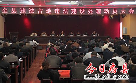 今日房县网讯 记者魏远扬 实习生王玮 通讯员丁伟报道:9日,全县违法占地违法建设处理动员大会在霖泓会议中心举行。县领导刘庆涛、杜启学、陈德汉、张富华,县政府党组成员、公安局局长柯正洪,县政府党组成员董诠闻,县法院院长肖玉玲,县检察院检察长郑轩出席会议。城关、红塔、白鹤三个乡镇和县直各部办委局的相关领导参加会议。