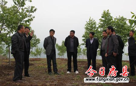 考察团一行在军店镇军马村核桃基地察看核桃产业发展情况