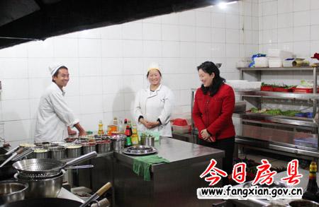 副县长林华一行在野人食府检查厨房卫生消毒情况