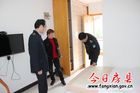 县卫生监督局执法人员检查旅店客房保洁情况