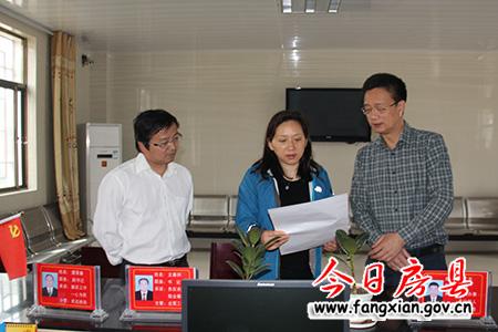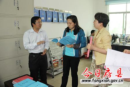 省纪委常委李莹查看纪工委工作记录,县委常委、纪委书记王家波陪同