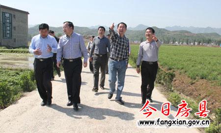 考察团一行在军店万亩药材基地察看我县中药业发展