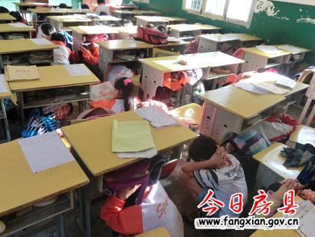 当天下午15时40分,校园里“地震警报”骤然响起,演练活动正式开始,随堂上课的教师立即停止授课,转而成为教室避震演练负责人,立即告知学生“地震来了,不要慌”,并指挥学生紧急避险,躲到课桌下或者墙角处。一分钟后,当解除警报响起,教师们迅速到达自己岗位,组织学生向操场紧急疏散。在老师的指挥下井然有序地从各个教室里迅速撤离,按照预定的疏散路线,快速跑向空旷的操场上。经核准470名师生全部安全到场,整个过程用时2分46秒,达到了预期的最佳效果。