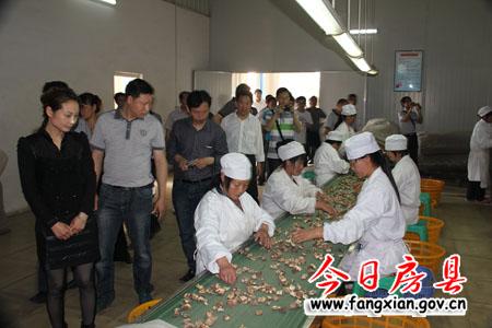 图为与会专家、会员代表在兴农食用菌专业合作社地理标志产品加工基地参观