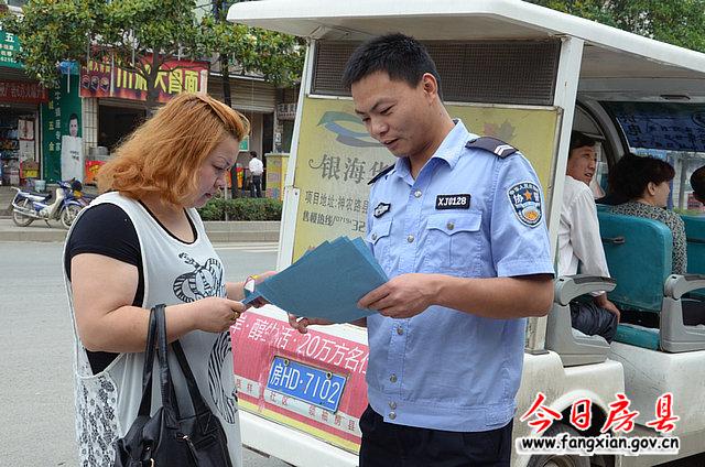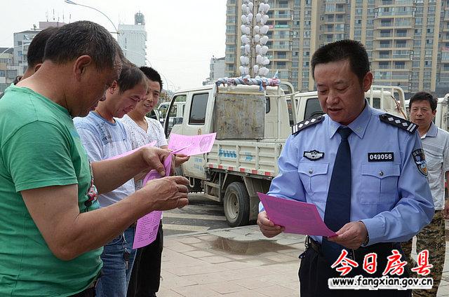民警正在向市民发放宣传资料