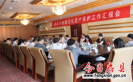 近年来,我县坚持把发掘房陵文化与开展非物质文化保护工作有机相结合,集中力量对我县非物质文化遗产保护和整理。至2013年,共整理116个项目名录,收集整理民间歌曲12000首,民间曲牌20多个,民谣300多首,盘根哥20多万字,收集民间故事8500篇,民间谚语15000条,民间音乐1500首,民间戏曲800出,古唱本100册,手抄民歌12000本,有关文物150件;民风民俗、民间活动文化记录资料15本,拍摄照片1.5万张;其中,我县申报的房县非文化物质遗产保护项目中的《尹吉甫的传说》、《孟宗孝子黄乡的故事》被列为省级保护名录,《房陵锣鼓歌》、《房县黄酒制作工艺》等13项被列入市级保护名录。