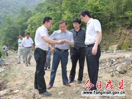 图为检查组在副县长高明哲陪同下到金裕石材察看企业生产情况
