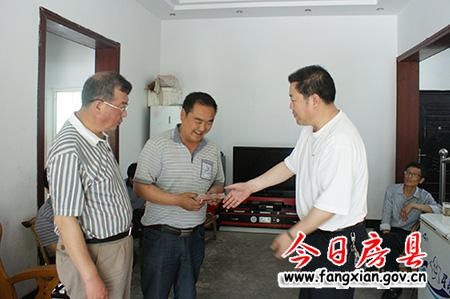 县检察院副检察长代明华、张吉斌将1万元慰问金送到村主任龚明清手中