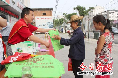 今日房县网讯 记者杨鹏 报道:6月5日是第42个世界环境日,县环保局借此机会开展主题为“同呼吸,共奋斗”的环保宣传活动。工作人员现场为市民讲解环保常识,发放“农村环境保护宣传画”、“环保普法小知识”等宣传资料。活动当天共发放各类宣传资料1000余份,现场咨询达1000余人次。