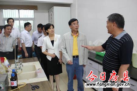 图为杨刚一行在县质监局实验室察看实验室建设及检测设备配备情况