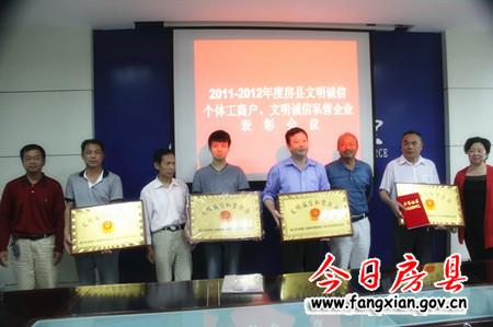 今日房县网讯 记者刘臣 通讯员代涛 报道:为进一步营造文明诚信经营氛围,加快文明县城创建,6日,我县对22家“2011—2012年度文明诚信经营户”进行了评选表彰。