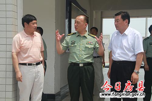 彭水清一行在县委书记沈明云、县委常委武装部部长许运福、武装部政委易永年的陪同下先后来到半岛湾大酒店、诗经文化广场、诗经景观大道、七河中学、军店镇双柏移民小区、县城至军店一级路、生态河堤、东城小学等地进行了实地察看。