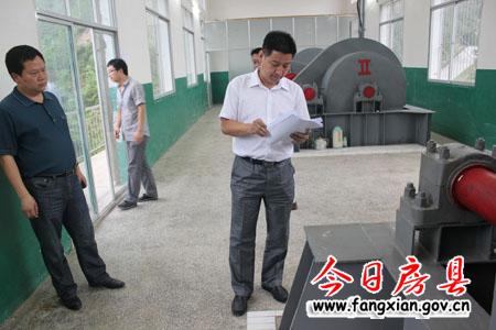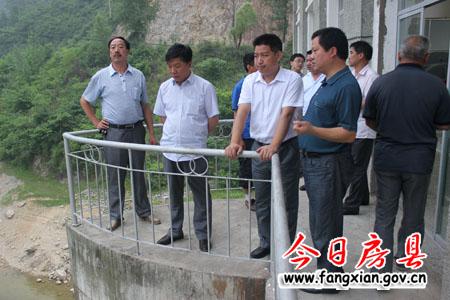 图为姚峰一行察看谭家湾水库防汛准备情况