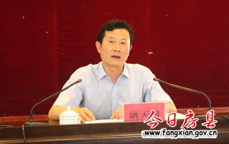 图为县委常委、副县长姚天国就城区环境整治做重要讲话