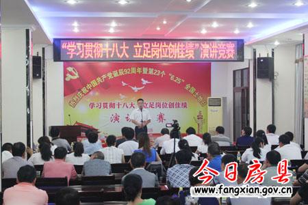 今日房县网讯 记者刘臣 通讯员柯启文 报道:为庆祝党的92华诞和第23各全国土地日,25日,县国土局举行了以“学习贯彻十八,立足岗位创业绩”为主题的演讲比赛。