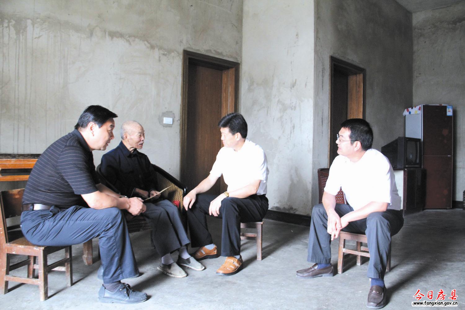 市委常委、统战部长彭承志(右二)在县委书记沈明云(左一),县委常委、组织、统战部长陈渊(右一)的陪同下看望困难党员陈学胜。