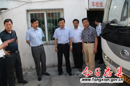 督查组察看县恒通公司车辆检测情况