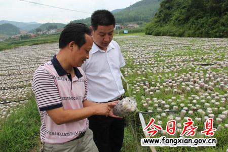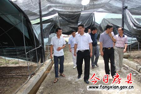 副县长姚峰在土城镇食用菌专业合作社了解代料香菇产业发展情况