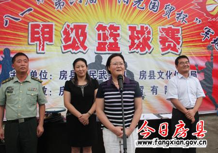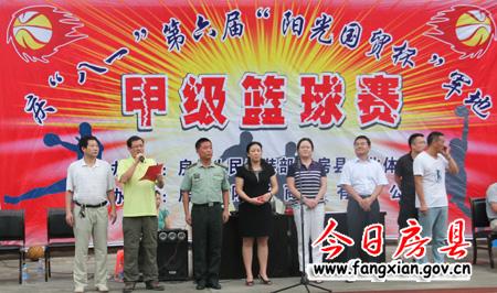 今日房县网讯 记者刘臣 实习生李保君 通讯员李丽 报道:为庆祝第86个“八一”建军节的到来,29日,我县组织驻房部队官兵和群众团体开展了第六届“阳光国贸杯”军地甲级篮球友谊赛。县委常委、宣传部部长徐锦凤,县委常委、组织部部长陈渊出席比赛开幕式。副县长林华在开幕式上致辞。