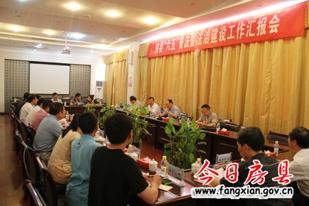 市人大法工委主任温和灿带领的市检查组听取我县“六五”普法工作汇报