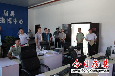 图为检查组在县消防大队察看应急指挥系统运行情况