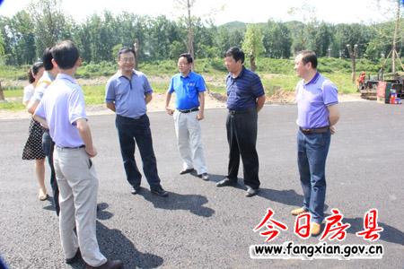 图为张涛一行在县城至军店一级路察看工程建设情况