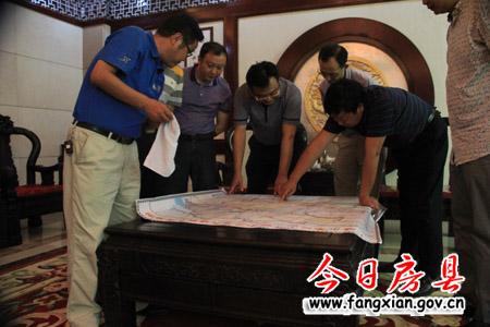 图为张涛一行察看我县“十二五”交通发展规划