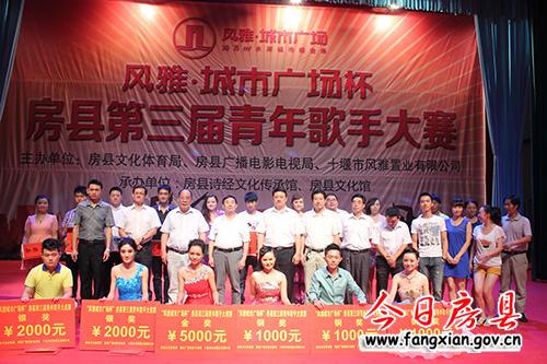 今日房县网讯 实习生林敏 戢宇晖 报道:8号晚,我县影剧院里歌声悠扬,由县文体局、县广播电影电视局、十堰风雅公司主办的“风雅城市广场杯”第三届青歌赛决赛在这里隆重举行。县人大常委会副主任丁宪章为获奖者颁奖。