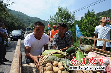 图为沿线群众为施工队伍送来蔬菜瓜果支持公路建设