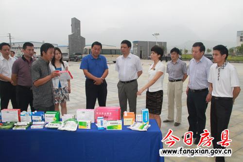 图为岳勇一行在金鼎制药有限公司调研。